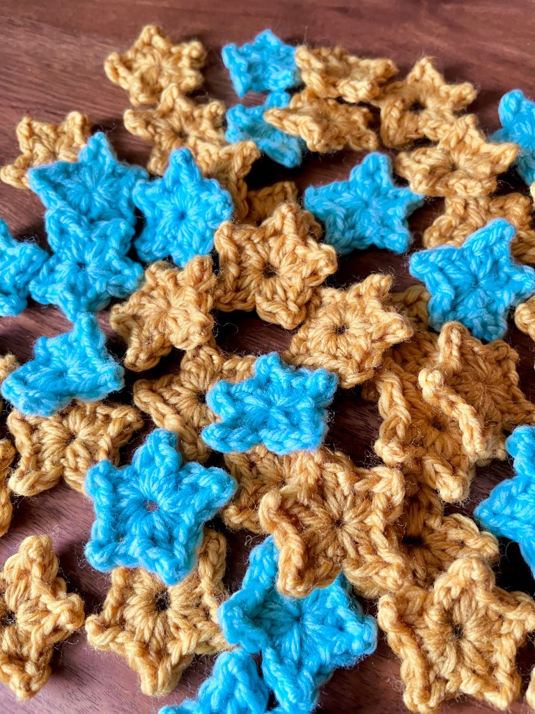 Here are the written instructions to crochet your own tiny stars. There’s also a video at the bottom of this post if you want to see the whole process. Heads up- the video doesn’t have any instructions- it’s just me crocheting a star in case you need a visual.